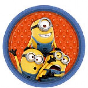 Kartonski krožniki z motivom minionov, premer 23 cm, v paketu 8 kosov.