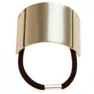 Elastika z večjim kovinskim polkrogom, CUFF. Modni hit: s pritrjeno močno elastiko naredimo čop, ki jo prekrije eleganten kovinski zaokrožen polkrog v srebrni ali zlati barvi. Primeren za širši čop oz. več lasn ali skodrane lase.