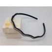 Tanek črn obroč z valovito obliko z linijo kamenčkov. Kvalitetna upogljiva plastika.