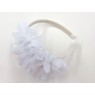 Čudovit obroč za svečane priložnosti, bel ozek obroč z veliko okrasno pentljo s perlami. Velikost rože cca. 15 cm.
