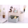 Spodnji del je sestavljen iz enega predala, zgornji del pa je opremljen s 6 predelki, ki lahko sprejmejo ščetke, kartice, kozmetiko, parfume, nakit itd.